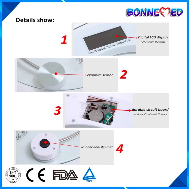 BM-1401 Foldable Handle High Precision Circular Household 180kg Digital Personal Body Bathroom Scale with CE&RoHS Images |